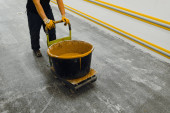 Zdjęcie "Robotnik stosujący system podłóg epoksydowych i poliuretanowych.Te łatwe do czyszczenia produkty posiadają również właściwości antypoślizgowe." może być wykorzystywane do celów osobistych i komercyjnych zgodnie z warunkami zakupionej licencji Royalty-free. Obraz jest dostępny do pobrania w jakości wysokiej rozdzielczości do 5760x3840.