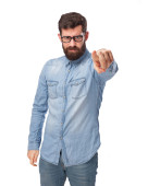 młody przystojny mężczyzna uczucie krzyż, pokazując kciuki w dół