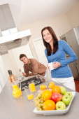 młoda kobieta z czerwonym winem w kuchni