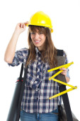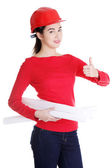dziewczyna pokazuje w hełmie konstruktora, że wszystko będzie dobrze