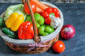Zdjęcie "Asortyment świeżych surowych warzyw w drewnianym pudełku na stole domowej kuchni. Zdrowa żywność, koncepcja diety warzywnej." może być wykorzystywane do celów osobistych i komercyjnych zgodnie z warunkami zakupionej licencji Royalty-free. Obraz jest dostępny do pobrania w jakości wysokiej rozdzielczości do 5760x3840.