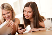 Studenci - dwa kobiece nastolatek oglądania telewizji