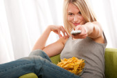 Studenci - szczęśliwa kobieta nastolatek z chipsy