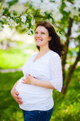 szczęśliwy w ciąży kobieta las lato
