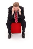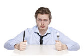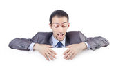 młody biznesmen, pracownik biurowy lub student siedząc w zabawny sma