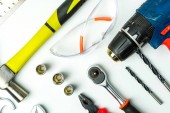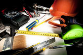 Narzędzia dla elektryków. kasków ochronnych, szczypce, kable, nóż, itp.