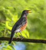Zdjęcie "Niski kąt zbliżenie wizerunek wschodni Robin podgatunek amerykański Robin (Turdus migratorius) siedzący na gałęzi drzewa trzymając dżdżownicę w jego dziób. " może być wykorzystywane do celów osobistych i komercyjnych zgodnie z warunkami zakupionej licencji Royalty-free. Obraz jest dostępny do pobrania w jakości wysokiej rozdzielczości do 5760x3840.