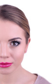 portret młodej kobiety z czerwona szminka na ustach
