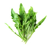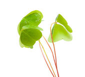 Jasny zielony i fioletowy liści sałaty babyleaf; na białym tle