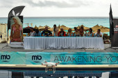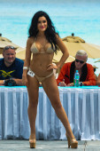 Modele stawia na plaży kurortu mandali