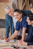 kobieta projektanta wnętrz z dwóch klientów w urzędzie, wybierając kolory