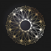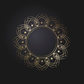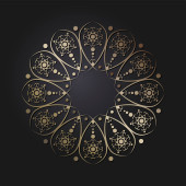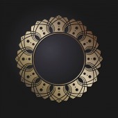 Dekoracyjne ażurowe okrągłe ramki ze złotym abstrakcyjnym wzorem na czarnym tle. Okrągły ornament. Elegancki element designu. Wektor.