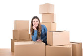 Przeprowadzka, w domu: kobieta z pola w nowym domu mając kubek kawy