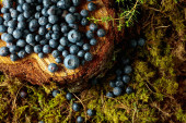 Zdjęcie "Świeże jagody na pniu sosny w lesie." może być wykorzystywane do celów osobistych i komercyjnych zgodnie z warunkami zakupionej licencji Royalty-free. Obraz jest dostępny do pobrania w jakości wysokiej rozdzielczości do 5760x3840.