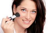 Pielęgnacja ciała: młoda kobieta stosowania proszku z pędzla