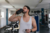 Zdjęcie "mężczyzna sportowiec pije proteinowy shake." może być wykorzystywane do celów osobistych i komercyjnych zgodnie z warunkami zakupionej licencji Royalty-free. Obraz jest dostępny do pobrania w jakości wysokiej rozdzielczości do 5760x3840.
