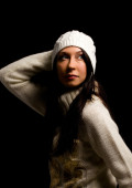 zdjęcie kobiety z zimowych ubrań na na białym tle