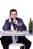 człowiek w modny strój z okulary rozmowy na telefon komórkowy