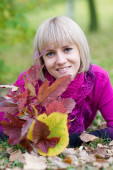 uroczą kobietą w parku jesień z klastra dzikie popiołu w ręce
