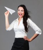 ładna i młoda kobieta w czarny garnitur, sprawdzanie niektóre bilety i Dokonywanie wyrażenie zwycięzca