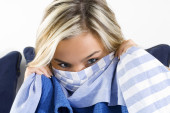 atrakcyjna młoda kobieta picia filiżankę kawy jeden rano w jej salonie
