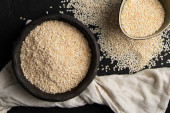 Zdjęcie "Czarne i białe nasiona sezamu na czarnym tle. Koncepcja żywności ekologicznej Widok z góry, Kopiuj przestrzeń, panorama, baner" może być wykorzystywane do celów osobistych i komercyjnych zgodnie z warunkami zakupionej licencji Royalty-free. Obraz jest dostępny do pobrania w jakości wysokiej rozdzielczości do 5760x3840.