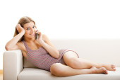 Zdjęcie "młody i attactive blond kobieta rozmawia z telefonii komórkowej i jeden wieczór w jej sypialni przed do snu" może być wykorzystywane do celów osobistych i komercyjnych zgodnie z warunkami zakupionej licencji Royalty-free. Obraz jest dostępny do pobrania w jakości wysokiej rozdzielczości do 5760x3840.
