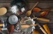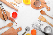 Zdjęcie "Tło naczyń kuchennych na białym drewnianym stole kuchennym. narzędzia. Widok z góry" może być wykorzystywane do celów osobistych i komercyjnych zgodnie z warunkami zakupionej licencji Royalty-free. Obraz jest dostępny do pobrania w jakości wysokiej rozdzielczości do 5760x3840.