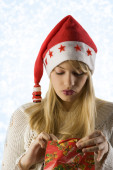 azjatyckie dziewczyny santa claus posiadający tradycyjny czerwony chiński kubek ryżu