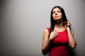 piękny portret młoda i piękna dziewczyna z długimi czarnymi włosami
