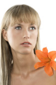 ładny portret młodej kobiety blond gryzienie jej wargi