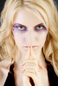 ładna kobieta z Artystyczny makijaż co zaskoczony twarz