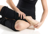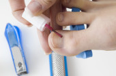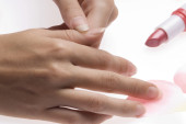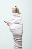 bliska kobiety z bandaż wokół twarzy i czerwone usta