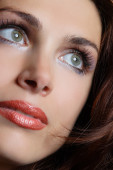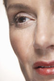 portret młodej kobiety ładny z wody spadnie na jej usta skupić się na usta