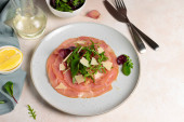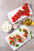 Zdjęcie "Domowej roboty bruschetta, pyszna przekąska smażonych plasterków chleba, jest jednym z symboli gastronomicznych Włoch. Na szarym tle, ze szklanką wina. Koszty ogólne, pionowe" może być wykorzystywane do celów osobistych i komercyjnych zgodnie z warunkami zakupionej licencji Royalty-free. Obraz jest dostępny do pobrania w jakości wysokiej rozdzielczości do 5760x3840.