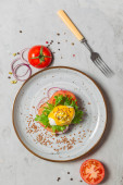 Domowej roboty bruschetta, pyszna przekąska smażonych plasterków chleba, jest jednym z symboli gastronomicznych Włoch. Na szarym tle, ze szklanką wina. Koszty ogólne, pionowe