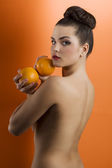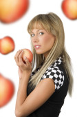 strzał mody glamour Dziewczyna Zmysłowe, prowadzenie Czerwone jabłko na czerwonym tle