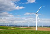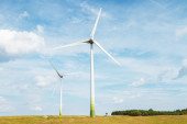 Turbiny wiatrowe do produkcji energii elektrycznej, prowincja Saragossa, Aragon w Hiszpanii.