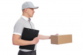 Zdjęcie "po kobieta usługi dostawy z pola na białym tle " może być wykorzystywane do celów osobistych i komercyjnych zgodnie z warunkami zakupionej licencji Royalty-free. Obraz jest dostępny do pobrania w jakości wysokiej rozdzielczości do 5760x3840.