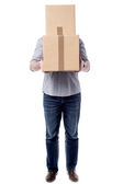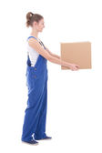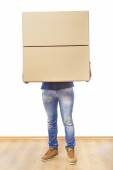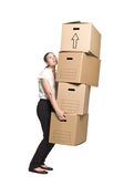 kobieta z dwa duże Kartonowe pudła ruchu na białym tle