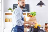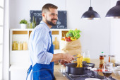 Zdjęcie "Młody człowiek z naczyniem do pieczenia w kuchni" może być wykorzystywane do celów osobistych i komercyjnych zgodnie z warunkami zakupionej licencji Royalty-free. Obraz jest dostępny do pobrania w jakości wysokiej rozdzielczości do 5760x3840.