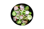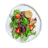 zioła zmieszane z pomidorami wiśniowymi i musztardą