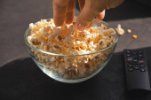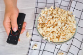 Zdjęcie "wiadro popcornu, telewizor na beżowym tle. Koncepcja czasu wolnego i rozrywki. Widok z góry" może być wykorzystywane do celów osobistych i komercyjnych zgodnie z warunkami zakupionej licencji Royalty-free. Obraz jest dostępny do pobrania w jakości wysokiej rozdzielczości do 5760x3840.