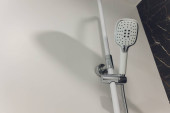Woda płynąca w starym metalowym prysznicu - połknij DOF.focus na top.some krople wody są rozmyte ze względu na prędkość wody.