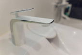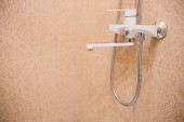 Woda płynąca w starym metalowym prysznicu - połknij DOF.focus na top.some krople wody są rozmyte ze względu na prędkość wody.