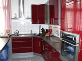 luksusowa kuchnia w czerwieni i bieli. Wysokiej jakości zdjęcie
