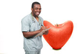 czarny mężczyzna Afryki amerykański lekarz kardiolog gospodarstwa czerwone serce