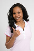 piękny asian - hiszpańskie dziewczyny podając kciuki