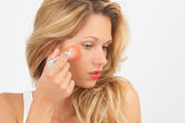 Młoda kobieta nakładająca makijaż