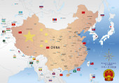 Chińska oficjalna flaga narodowa, kraj azjatycki, ilustracja wektora